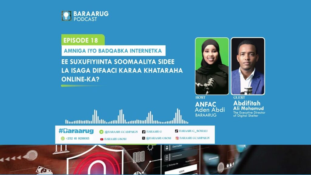 Baraarug Podcast guest is Abdifatah Mohamed Ali, director of Digital Shelter, an organization working to improve digital safety in Somalia.