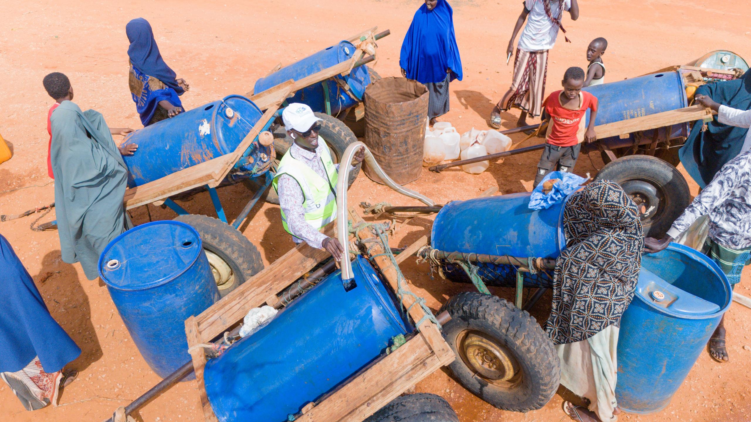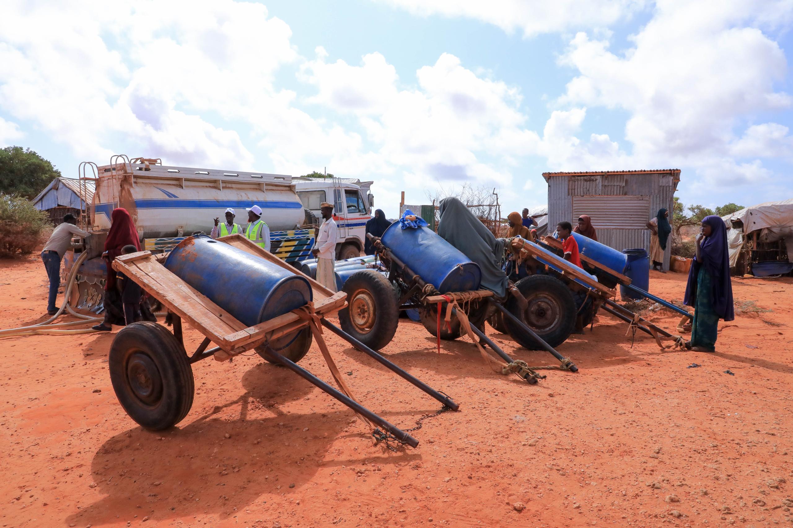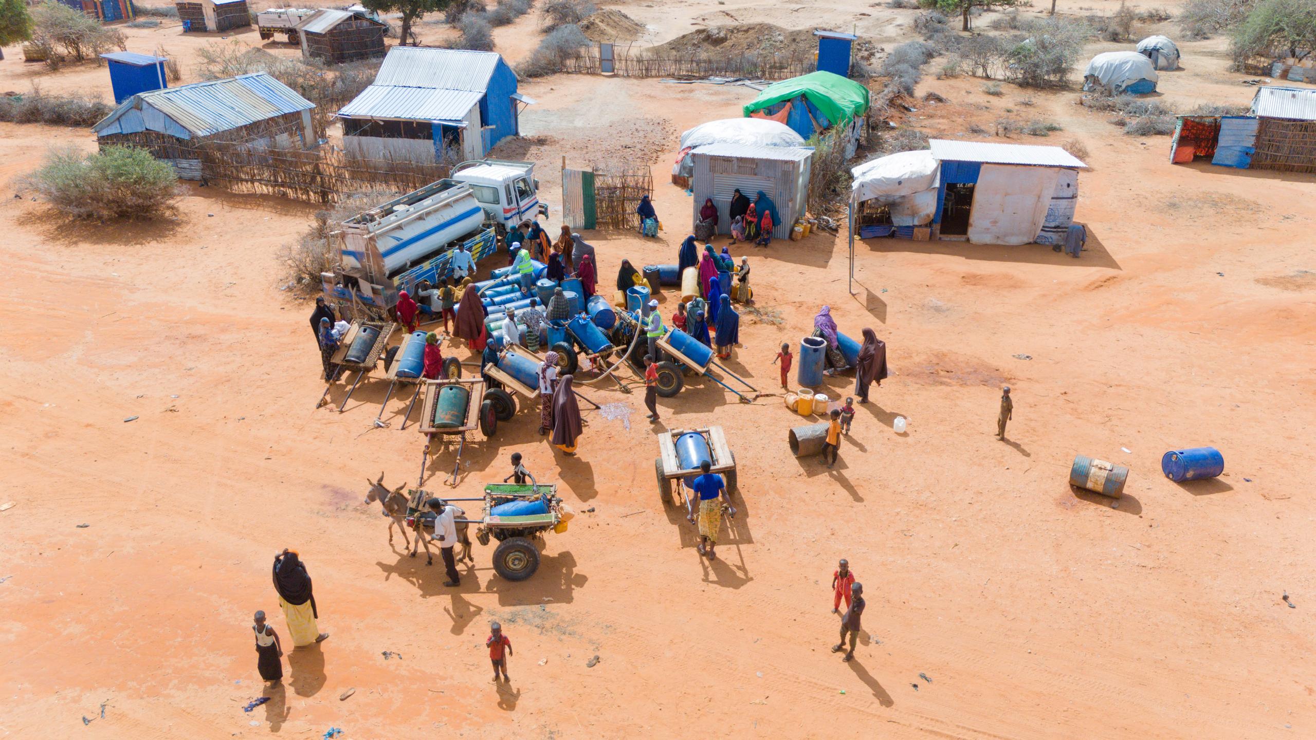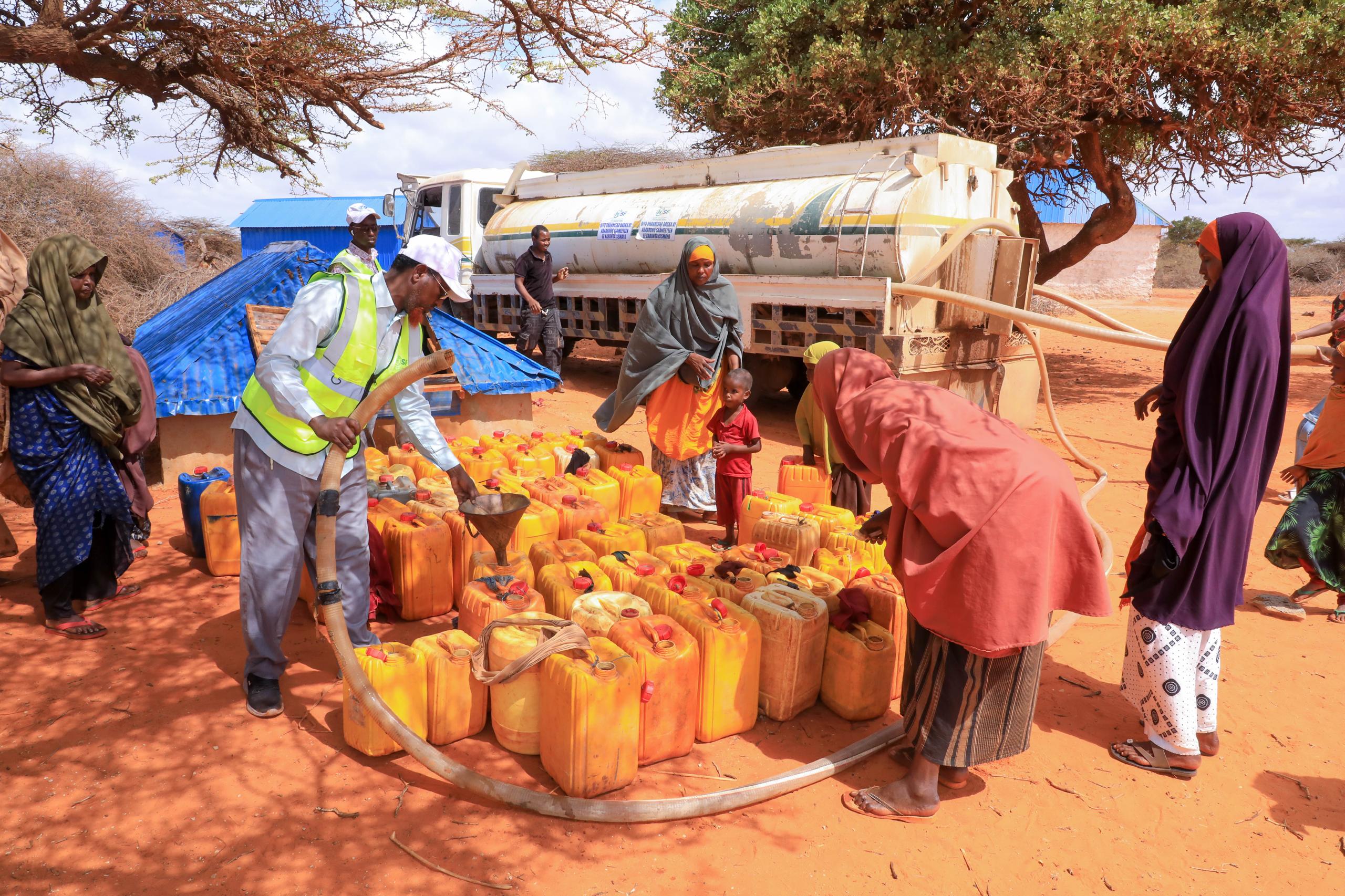 However, aid has not arrived, and only water trucking provided by NGOs and local businesspeople in Kismayo has kept them alive since December of last year.