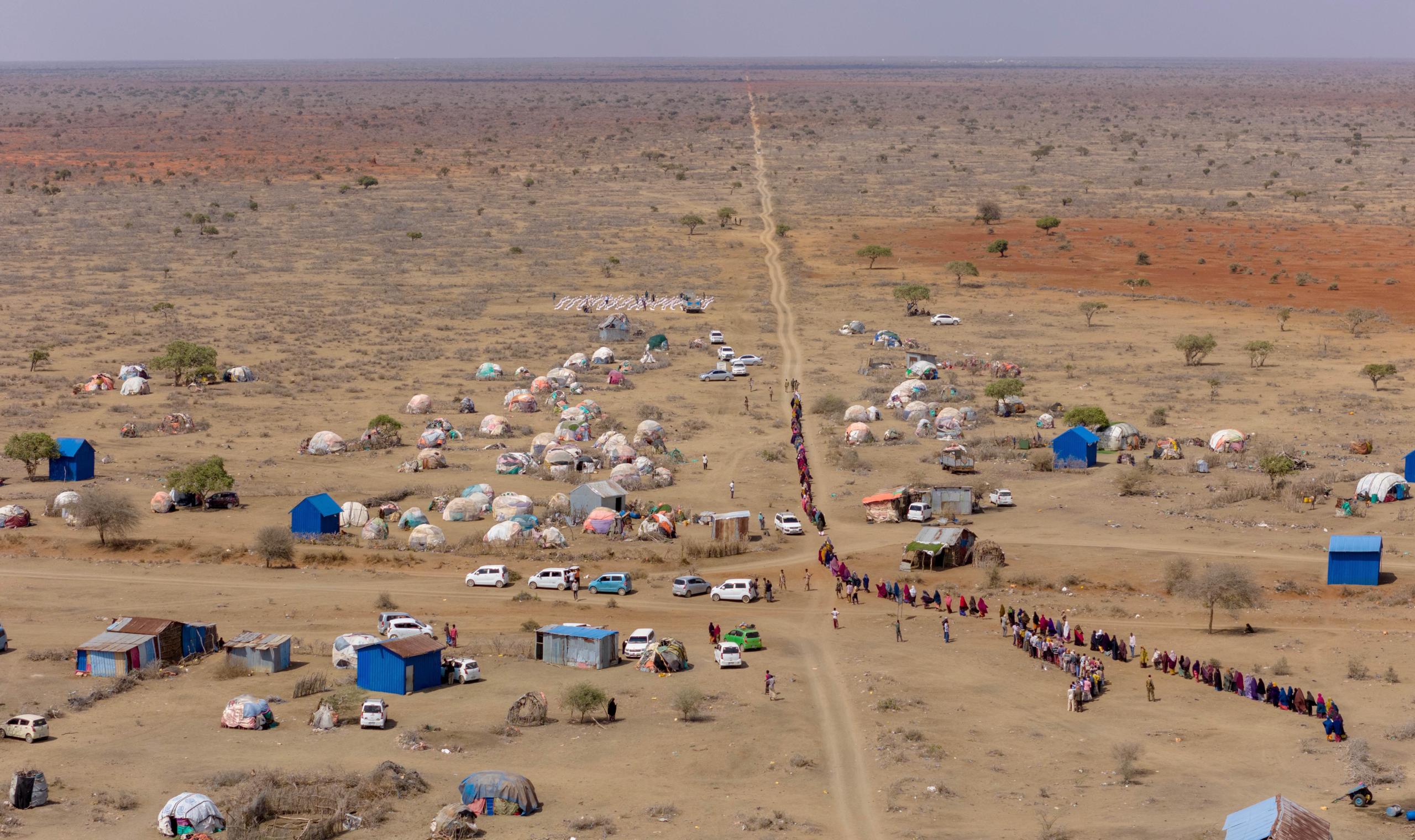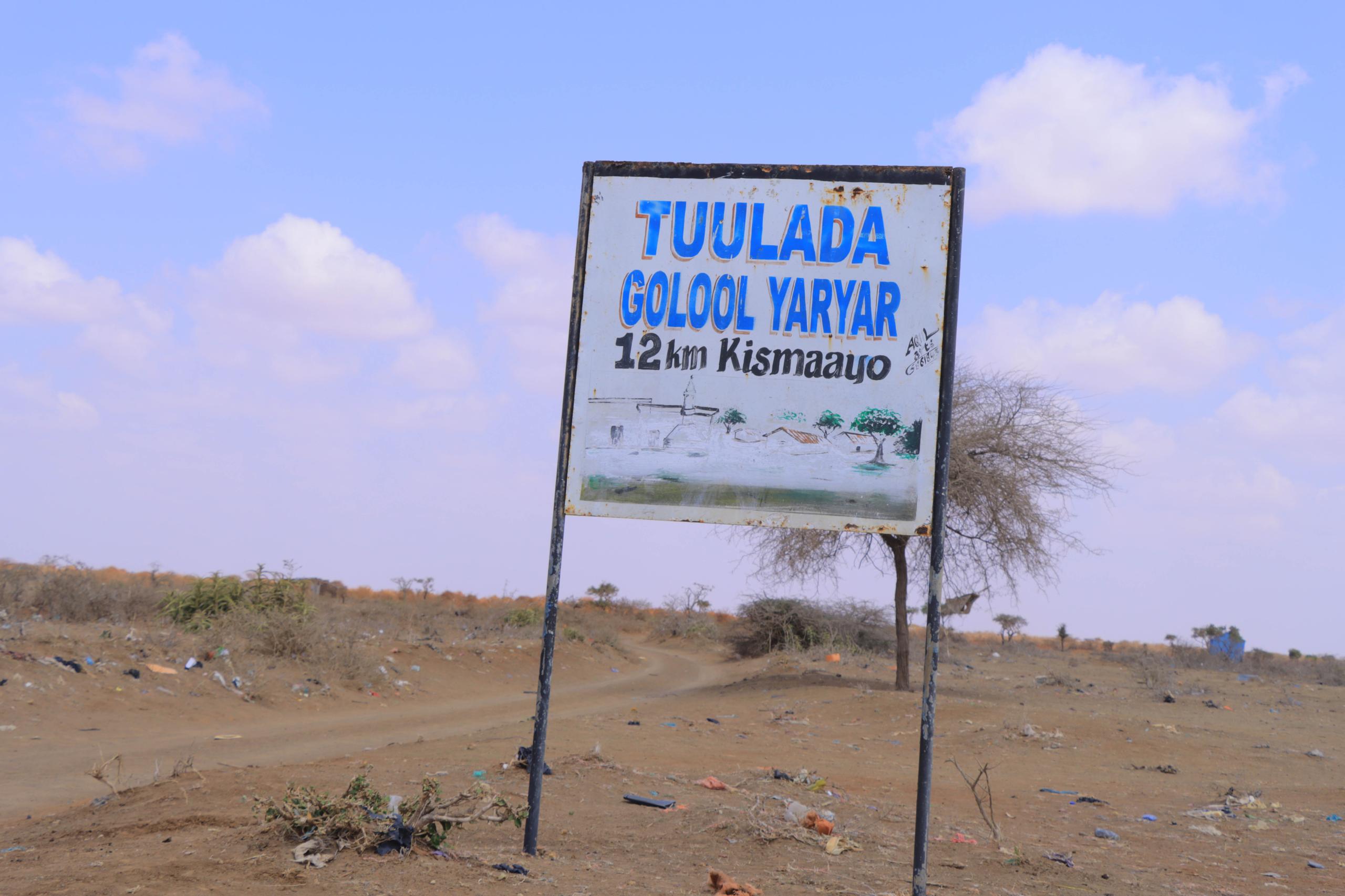 Here in Barkadda Shariifadda village, about 13 km west of Kismayo, Jubaland, on 16 March 2026, women wait for the arrival of a water trucking vehicle brought by an NGO from Kismayo. This is the only water the community can access to survive. | PHOTO/ABDULLAAHI HUSSEIN KILAS/ KAAB TV.Children carry jerrycans in Barkadda Shariifadda village, about 13 km west of Kismayo, Jubaland, while waiting for a water trucking vehicle brought by an NGO from Kismayo on 16 March 2026. This is the only water the community can access to survive. PHOTO/ABDULLAAHI HUSSEIN KILAS/ KAAB TV.Here in Barkadda Shariifadda village, about 13 km west of Kismayo, Jubaland, women wait for the arrival of a water trucking vehicle brought by an NGO from Kismayo on 16 March 2026. This is the only water the community can access to survive. | PHOTO/ABDULLAAHI HUSSEIN KILAS/ KAAB TV.Donkeys drink water in Ali Gaduudow village, west of Kismayo, after an NGO provided water trucking in mid-March. PHOTO/ABDULLAAHI HUSSEIN KILAS/ KAAB TV.In Galool Yar village, west of Kismayo, women queue to receive food donations brought by aid NGOs, as climate shocks and drought have left rural communities without food. Many have been forced to abandon their farms and livestock. PHOTO/ABDULLAAHI HUSSEIN KILAS/ KAAB TV.In Galool Yar village, west of Kismayo, women queue to receive food donations brought by aid NGOs, as climate shocks and drought have left rural communities without food. Many have been forced to abandon their farms and livestock. PHOTO/ABDULLAAHI HUSSEIN KILAS/ KAAB TV.In Galool Yar village, west of Kismayo, women receive food donations brought by aid NGOs, as climate shocks and drought have left rural communities without food. Many have been forced to abandon their farms and livestock. PHOTO/ABDULLAAHI HUSSEIN KILAS/ KAAB TV.This photo taken mid March shows a board sign marks the village of Galool Yar, about 12 km west of Kismayo. Most of the local community has been displaced as drought has left the area without water and wells dry. PHOTO/ABDULLAAHI HUSSEIN KILAS/ KAAB TV.Here in Kooyaama, a small fishing island community in the Indian Ocean, locals survive on water delivered by NGOs. These photos were taken in mid-March 2026. PHOTO/ABDULLAAHI HUSSEIN KILAS/ KAAB TV.Here in Kooyaama, a small fishing island community in the Indian Ocean, locals survive on water delivered by NGOs. These photos were taken in mid-March 2026. PHOTO/ABDULLAAHI HUSSEIN KILAS/ KAAB TV.