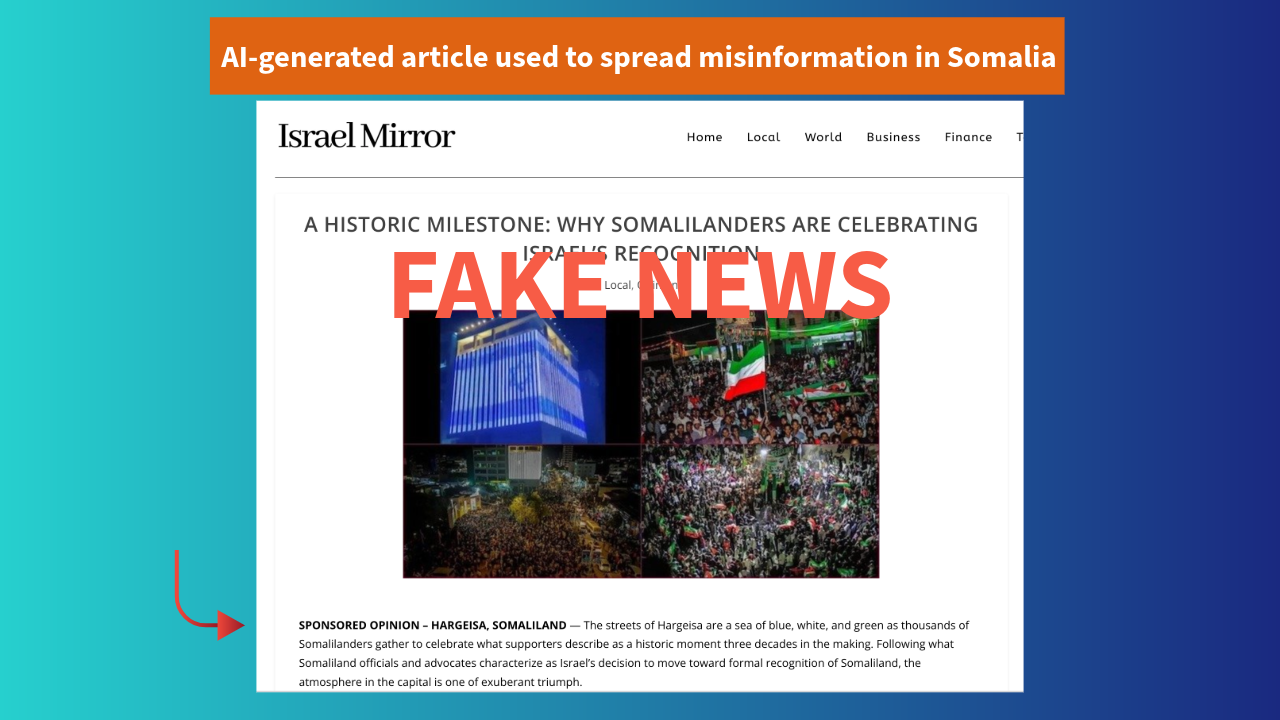 The timing of the Israelmirro.com AI-generated article was critical and could have put the lives of people from Somaliland at risk, including politicians who originally hail from the Isaaq clan.
