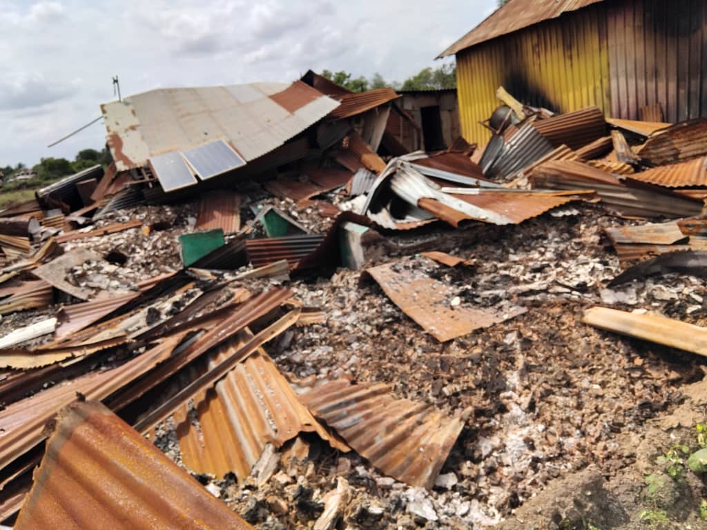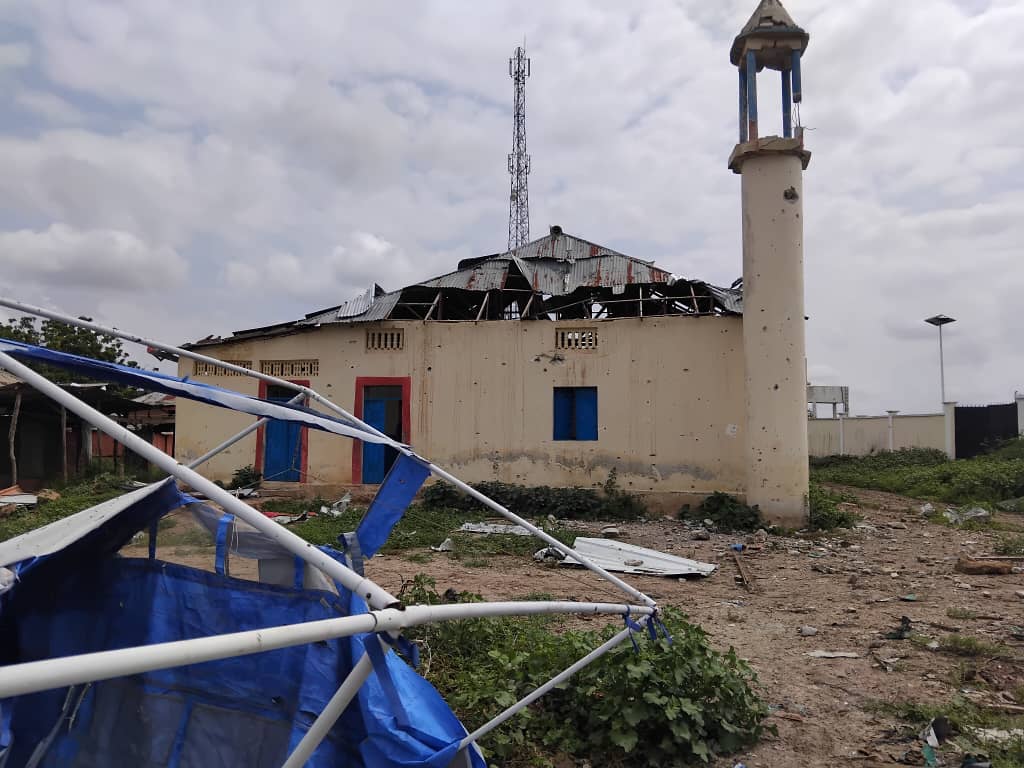 The photos show extensive damage in parts of the district, including what appears to be an airstrike near the Bariire mosque.