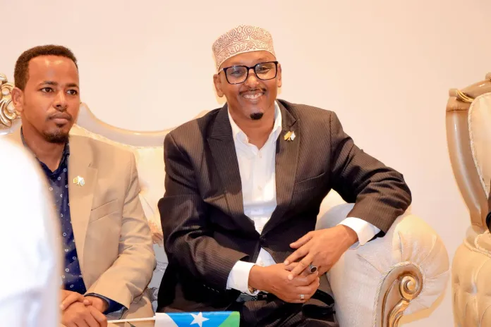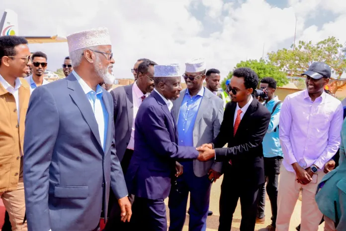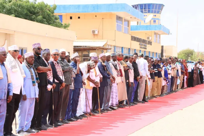Jubbaland President Ahmed Madobe greeted him at Sayid Mohamed Abdulle Hassan Airport, where a welcoming ceremony was held.