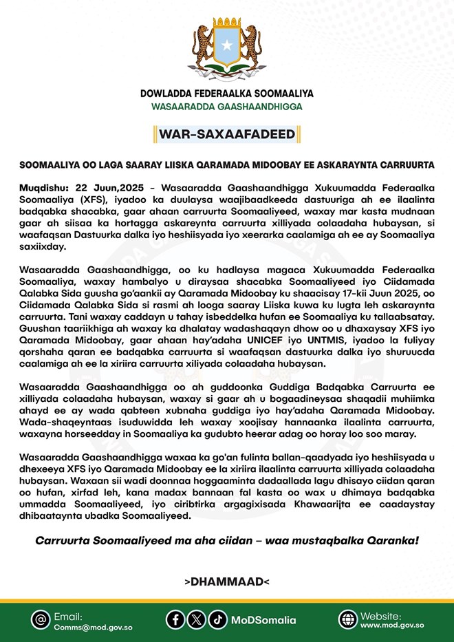 “We must work toward a unified process that brings together all Somali citizens. If we abandon selfish interests and embrace collective responsibility, we can overcome the disunity and conflict that have plagued our nation,” he said.