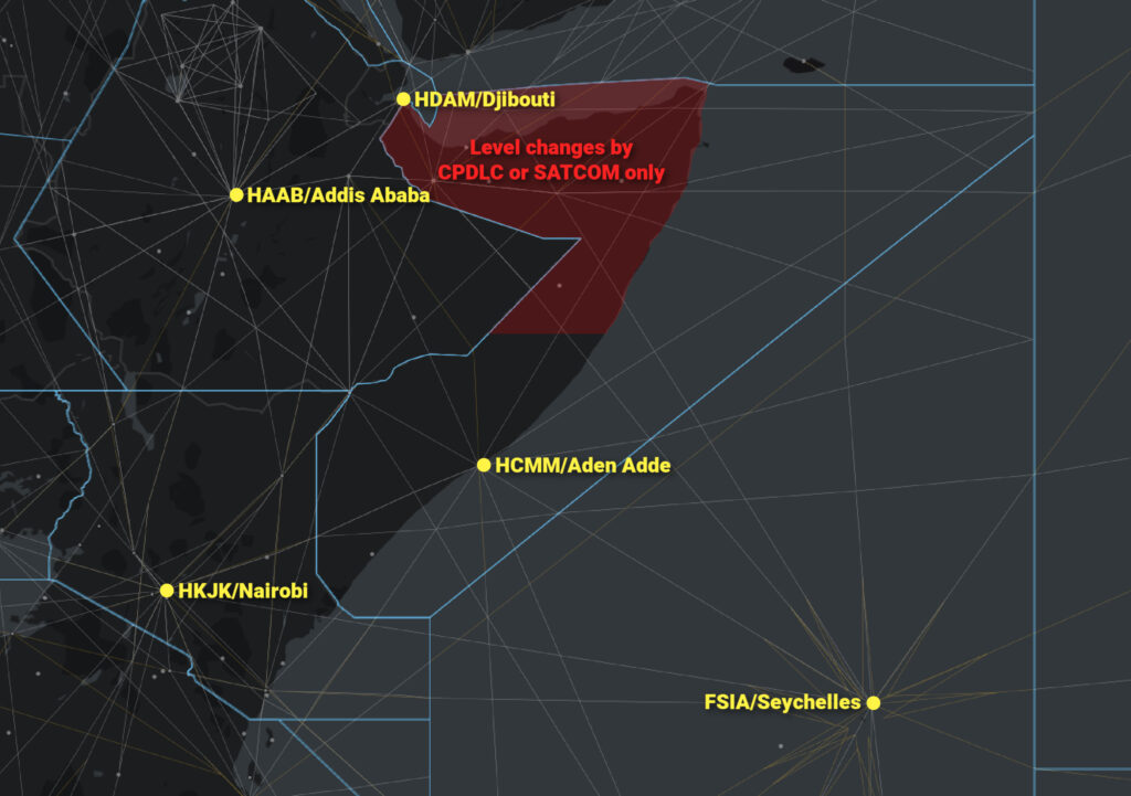 Avoid flight below FL260 in the HCSM/Mogadishu FIR, except for overwater routes to/from Djibouti (HDAM).