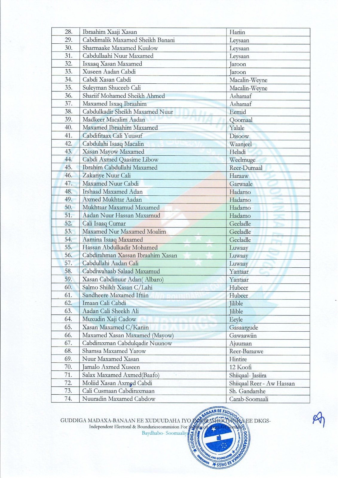 Somalia South West State: Complete List of New Parliament Members and Clan Breakdown