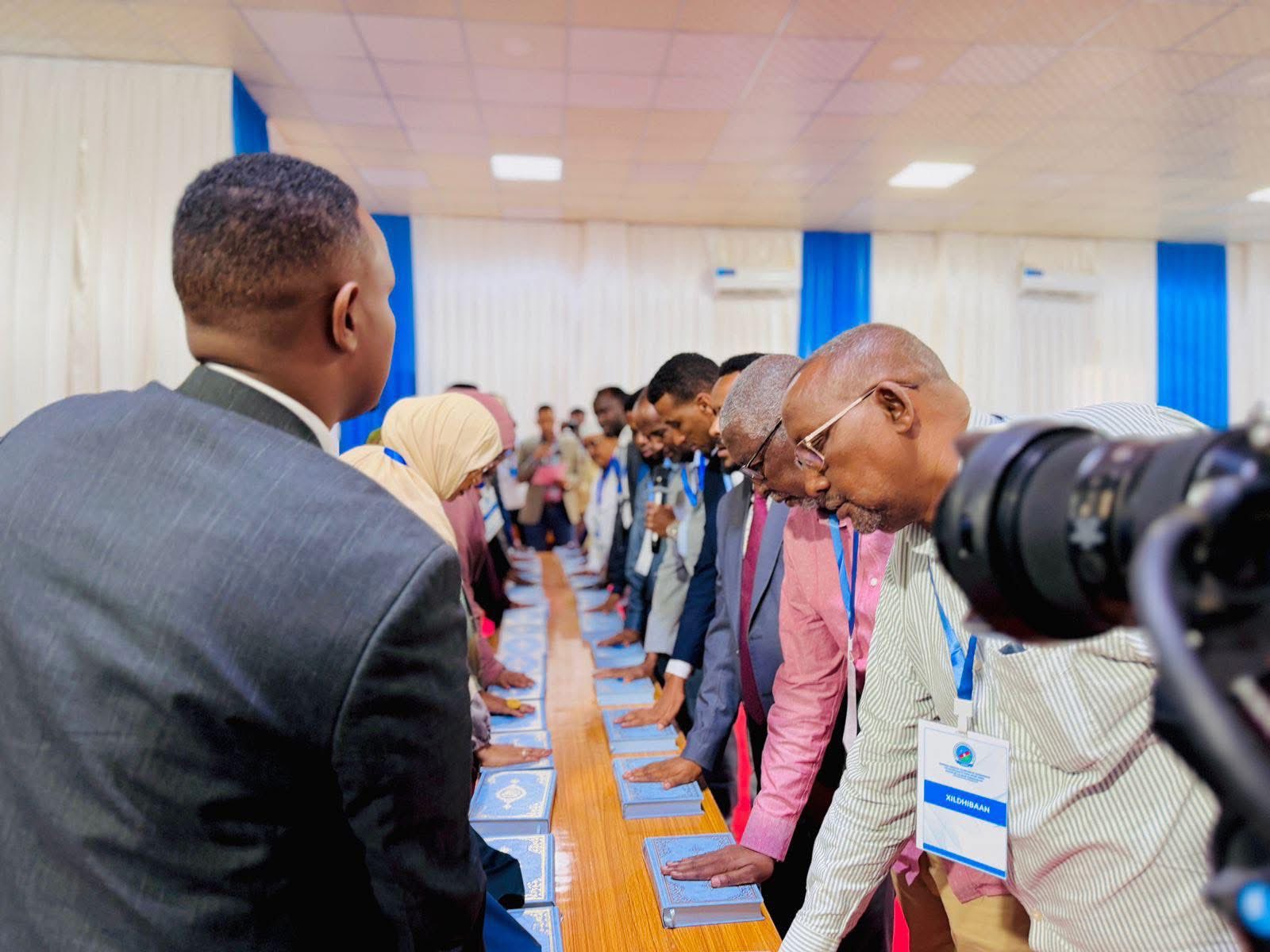 The MPs were sworn in today, Saturday (28 March 2026), and promptly re-elected Dr. Ali Said Fiqi as Speaker of Parliament, with Shamsa Mohamed Yarow as Deputy Speaker. Abdiaziz Hassan Mohamed (Laftagareen) was also elected President of South West State, securing 66 votes.