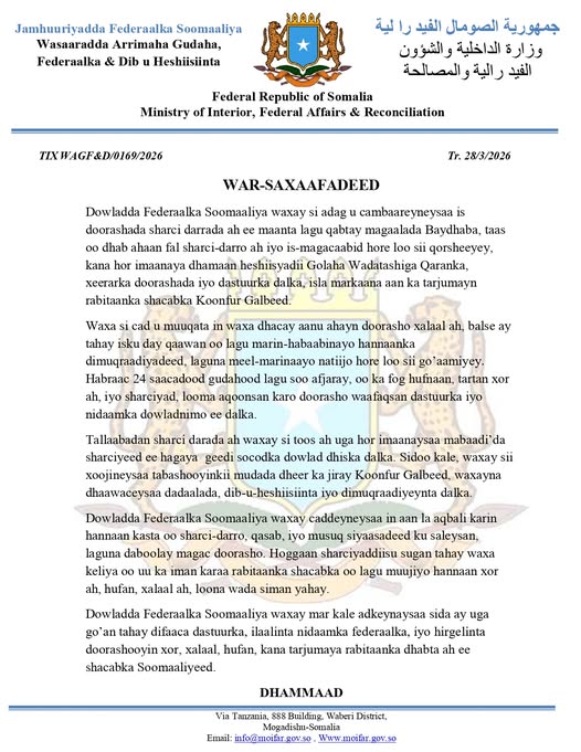 It concluded by reaffirming the federal government’s commitment “to defending the constitution, upholding the federal system, and implementing free, fair, and transparent elections that reflect the true will of the Somali people.”