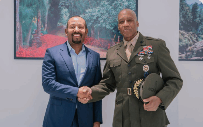 Addis Ababa (KAAB TV) — Ethiopian Prime Minister Abiy Ahmed met with General Michael Langley, Commander of the United States Africa Command (AFRICOM), in Addis Ababa to discuss bilateral relations and regional security concerns of mutual interest.